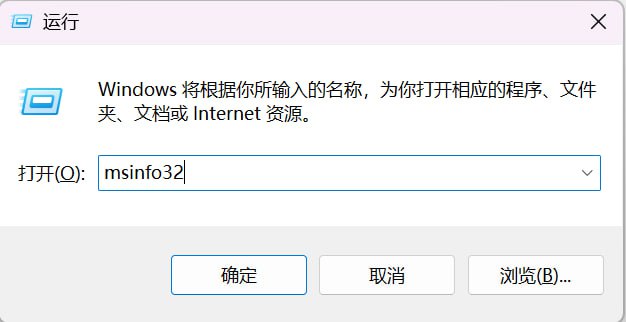 按下 Windows + R,输入 msinfo32,然后按回车。