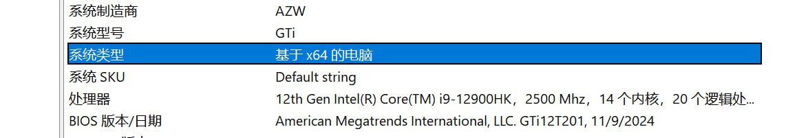 如果“系统类型”显示为 “基于 x64 的 PC”,则您的处理器支持 AMD64 (x86-64) 架构,适用于标准的 Windows AMD64 版本。